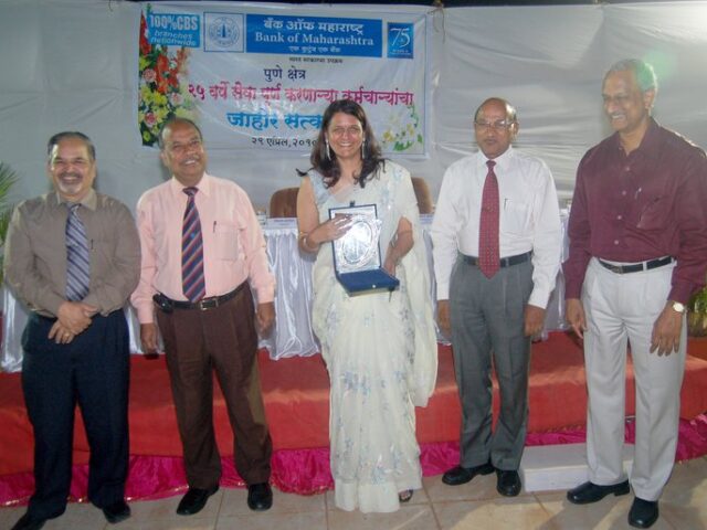 Dr. Vinitaa Apte receiving Silver Jubilee Award at the hands of Shri Vikas Chapekar General Manager Bank of Maharashtra 2010